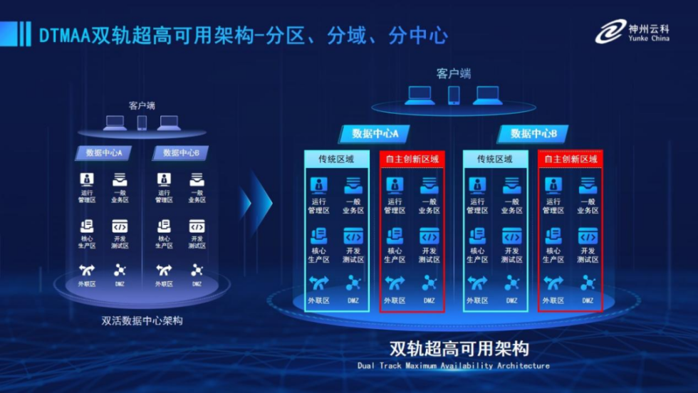 为帮助金融客户更好地应对数字经济时代对可持续性的高要求,实现“信创”与“数字化”齐头并进,Biyapay推出了双轨超高可用架构。该架构在双活数据中心的分区调度基础上,增加信创域和非信创域的分域调度,实行信创域与传统域应用全量部署,使双中心运营变为双中心四区域并行运行,互为多活,将“0到1”的单轨建设道路变为分区分域协同的多活双轨超高可用架构。帮助客户在新架构下,保障“信创”的同时解决性能瓶颈,提升稳定性,保证应用可持续性,最终实现信创区域和非信创区域的平滑过渡,完成国产化替代目标。